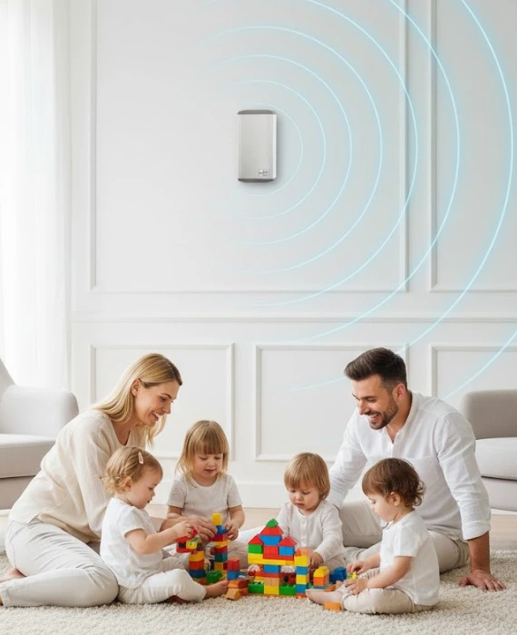 Transforme su casa en un entorno saludable con tecnología biocompatible y autónoma. Un sistema que funciona en silencio, sin químicos y sin consumo eléctrico.